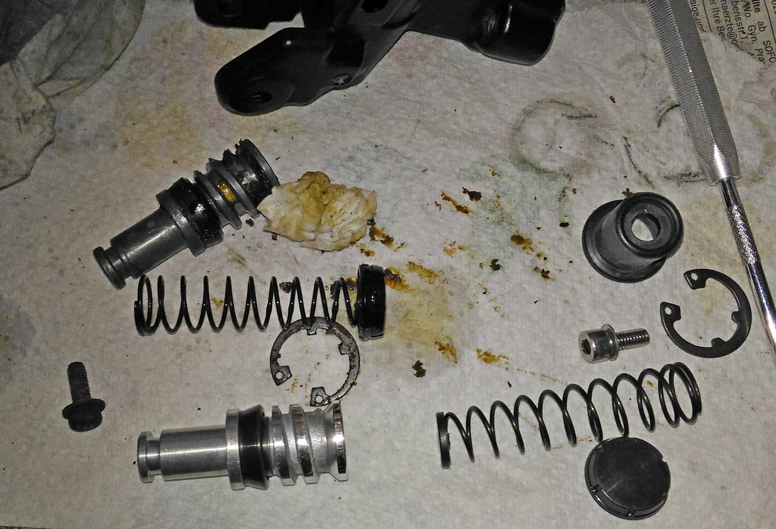 Die Gabel-Vorspannung ganz zurück nehmen, Kupplung ausbauen, und oh we, an die Feder im Hauptbremszylinder gar nicht erst denken, da kann man ja nicht mehr schlafen.