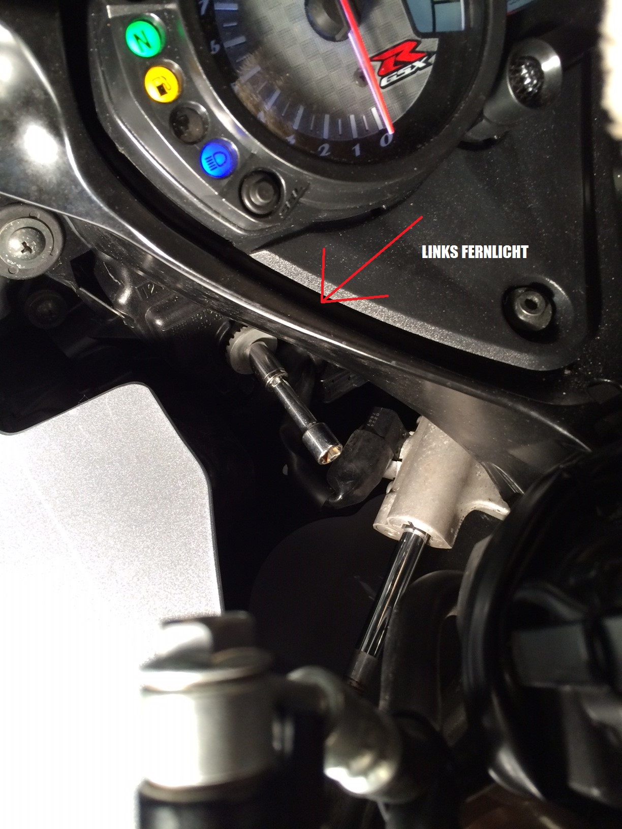 Könntet ihr mir vielleicht weiterhelfen und sagen wo ich bei meinem suzuki gsxr 600 bj 2007 k7 die Scheinwerfer einstellen kann? Sind nämlich viel zu hoch eingestellt