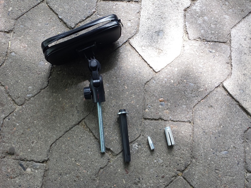 Hier ist meine Version von Handy/Navihalter. Gesamtkosten ca 15 Euro. Schraube von Baumarkt, Rest aus ebay china.
