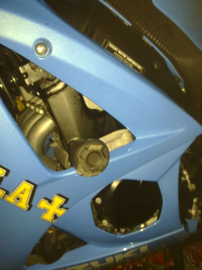 Augen zu,tief durchatmen. Schadensinspektion....erster Gedanke,scheisse,das wird teuer,der gute Yoshimura...hoffentlich keine Beule...Augen auf,gebückt. gesucht. NIX! Ich hab nicht eine Schramme am Bike!! Sturzpads (GSG am Rahmen und hinten von der Y-Aufnahme+Radachse) haben ALLES abgefangen. Nichtmal der Lenker/spiegel haben Kratzer,sogar der Auspuff rechts sieht noch aus wie neu.