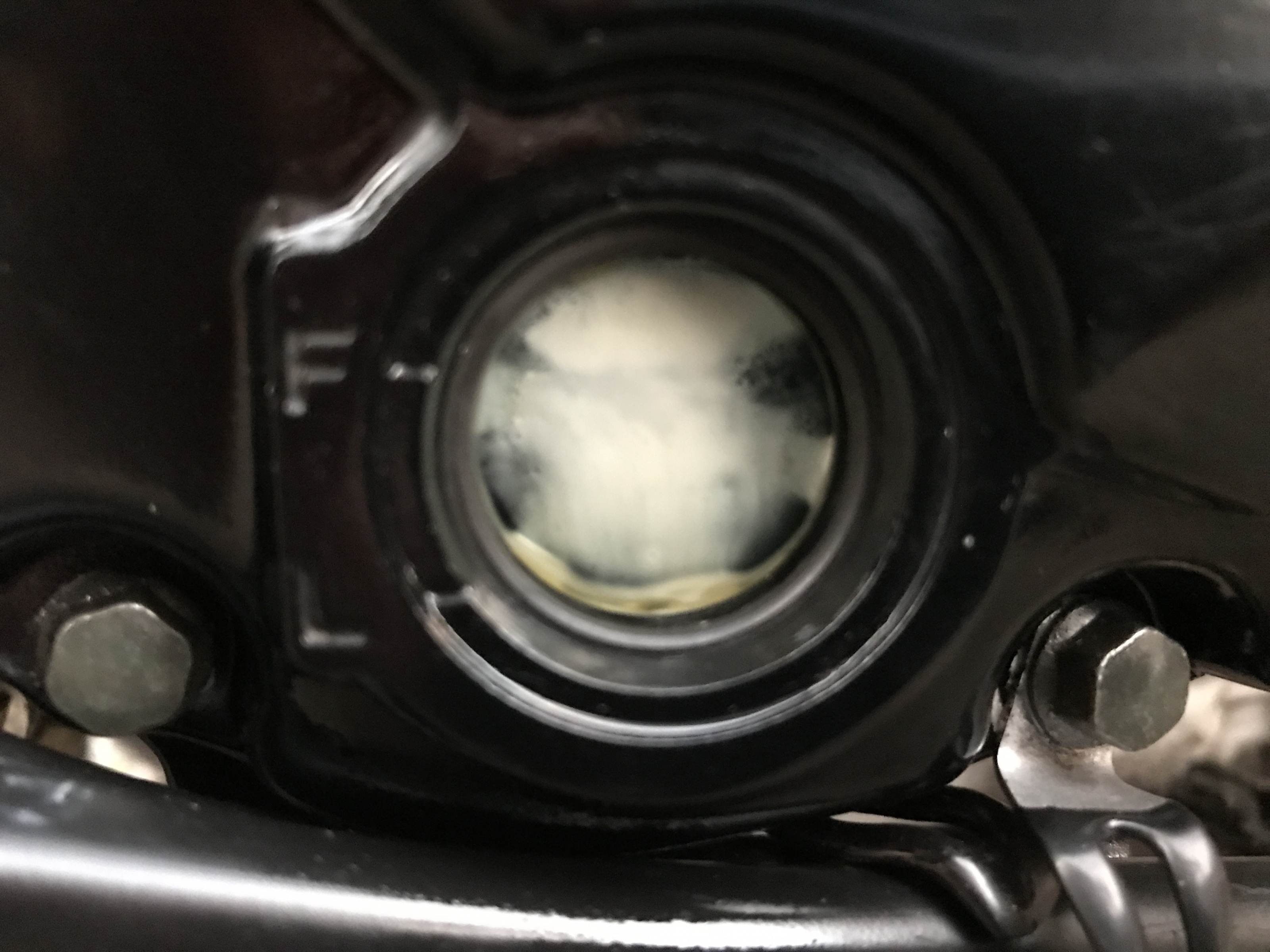 Nach ca. 15min ich hab gedacht ich Seh nicht richtig Weißer Schlamm am Deckel des Schauglases für Ölstand.